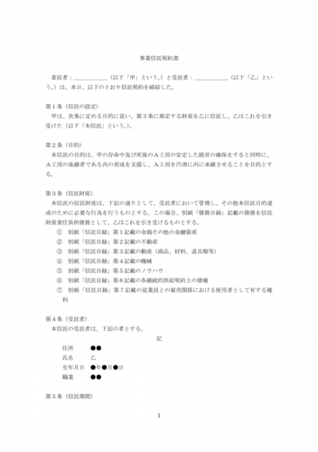 本契約文例書式集では、資産家・富裕層顧客の相続対策を専門として、様々なニーズに応じた信託の提案を行っている、弁護士法人マーシャルアーツの堀弁護士を筆頭に、計5名の弁護士が民事信託契約書の基本となる骨組み部分の総論から、下記の5つの効果別に、ス