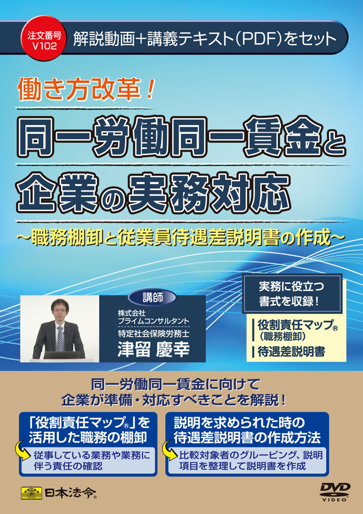 本商品は、「同一労働・同一賃金」の準備・対応に向け、現状を確認するための職務棚卸の方法として「役割責任マップ」を用いた、従事している業務の棚卸や業務に伴なう責任範囲の確認と従業員より説明を求められた際に使用できる“従業員待遇差説明書”の作成方法などを実務に即してわかりやすく解説しています。