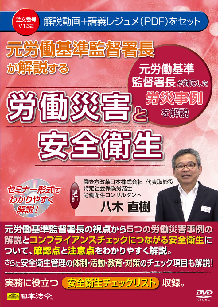 本商品では元労働基準監督署長の講師が、在職中に実際に体験した5つの労災事例を交えながら、事業所における安全衛生のチェックポイントについて、法律に沿って丁寧に解説していますので、安全衛生問題に取り組もうとする担当者、アドバイスをする立場の専門家の先生のコンプライアンスチェックにつながる内容となっています。