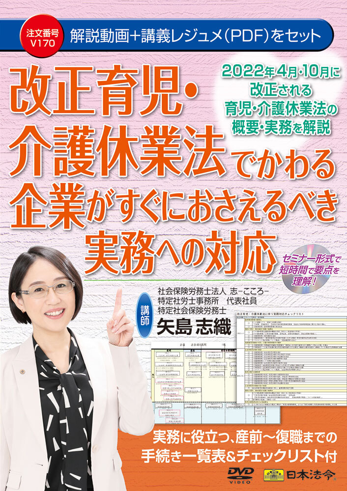 本DVDでは、少子化社会対策大綱で決定された希望出生率1.8%の実現のために大幅に改正される育児・介護休業法の改正趣旨、概要、改正内容を解説。