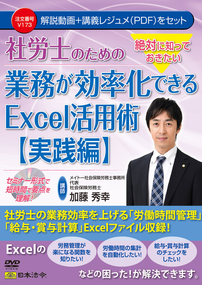 このDVDを見れば、①労務管理が楽になる関数が知りたい ②労働時間の集計を自動でしたい ③給与・賞与計算のチェックをしたい などの疑問が解決できます。