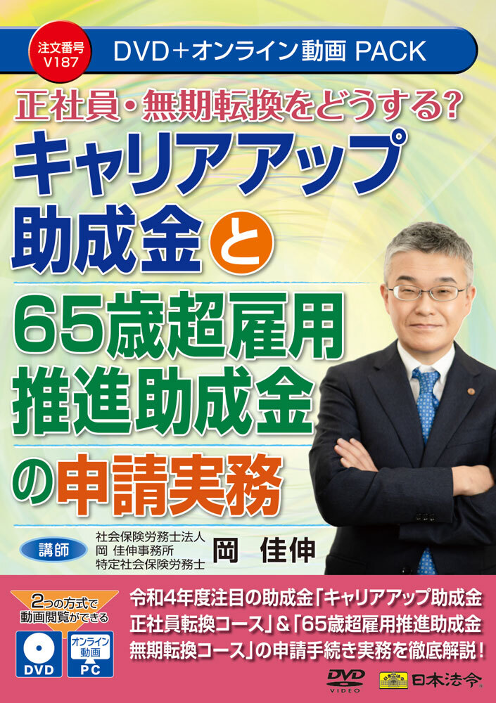 本DVDでは、キャリアアップ助成金正社員転換コースについて公表されている資料や行政開示請求で入手した資料を基に新要件について詳しく解説しているほか、50歳以上64歳未満の有期労働者を無期雇用に転換する場合に助成される、今年度注目の助成金「65歳超雇用推進助成金無期転換コース」についても解説していますので、顧問先から問い合わせの多い社会保険労務士の方におすすめです。