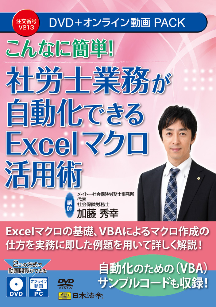 Excelマクロはプログラムを組む必要がありますが、プログラムはそこまで難しいものではありません。本DVDでは、社会保険労務士がExcelマクロを使って、業務の効率化を実現するための方法を解説しています。