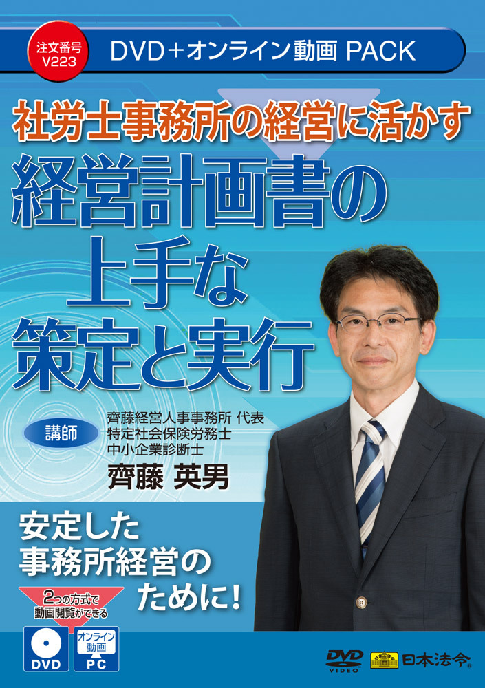 本DVDでは、特定社会保険労務士でもあり中小企業診断士でもある齊藤英男先生を講師に迎え、社労士事務所のための経営計画書策定の方法から経営計画の回し方まで、順序だてて解説しています。