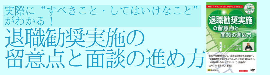 退職勧奨は自主的な退職という形で雇用関係を終了させることが必要ですが、勧奨相手に誤ったやり方で説得してしまうと単なる退職の強要になってしまいます。最近の裁判例を通じて、違法な退職勧奨とは何か、退職勧奨を実施するに当たってしてはいけないこと、しなければならないこと、望ましいことについて解説しており、具体的にどのように退職勧奨を実施すればよいか、法的リスクを踏まえて、退職勧奨の手続きと面談の進め方を解説したDVDです。