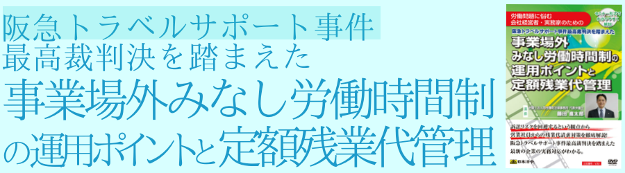 そこで、このDVDでは、最高裁の判決を理解するに先立って、事業場外のみなし労働時間制の運用ポイントを解説し、そして、最高裁の判決を分析していき、最高裁判決を踏まえて、企業の実務対応について、訴訟リスクを回避予防する観点から、定額(固定)残業代の問題を含めて、営業社員からの残業代請求対策を解説していきます。