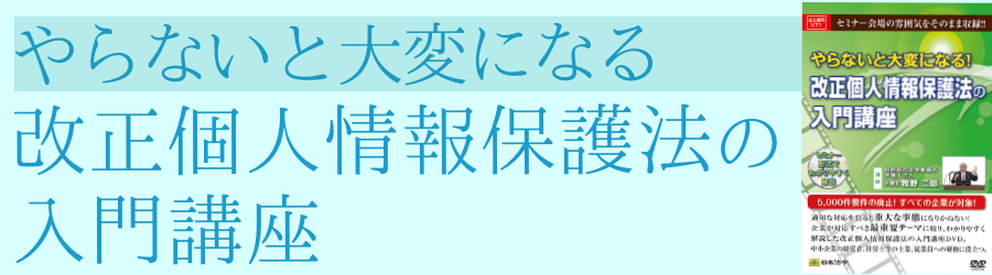 本DVDは、はじめて改正個人情報保護法の適用を受ける中小企業の経営者や、クライアントへアドバイス行う社労士等の士業、企業内で働く従業員の教育に役立つように、最重要テーマごとにわかりやすく解説した入門講座です。