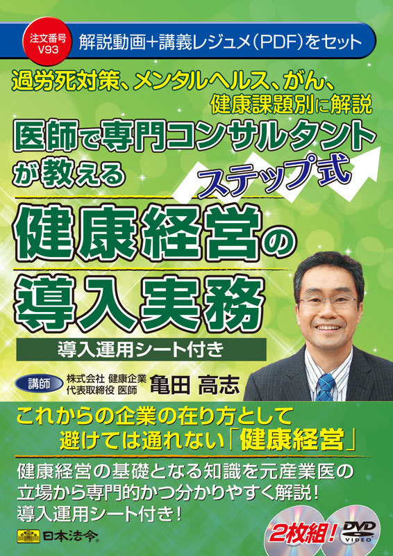本DVDは社労士が知っておきたい健康経営の基礎知識について、専門家の立場から過労死対策、メンタルヘルス、がんなど、健康課題ごとに分かりやすく解説しています。