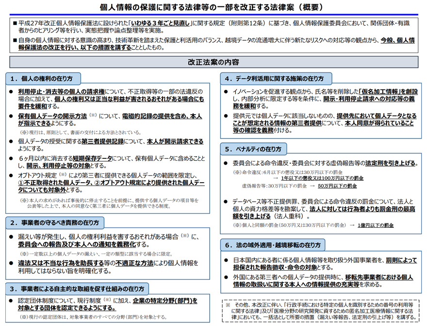 個人情報保護法の改正案について