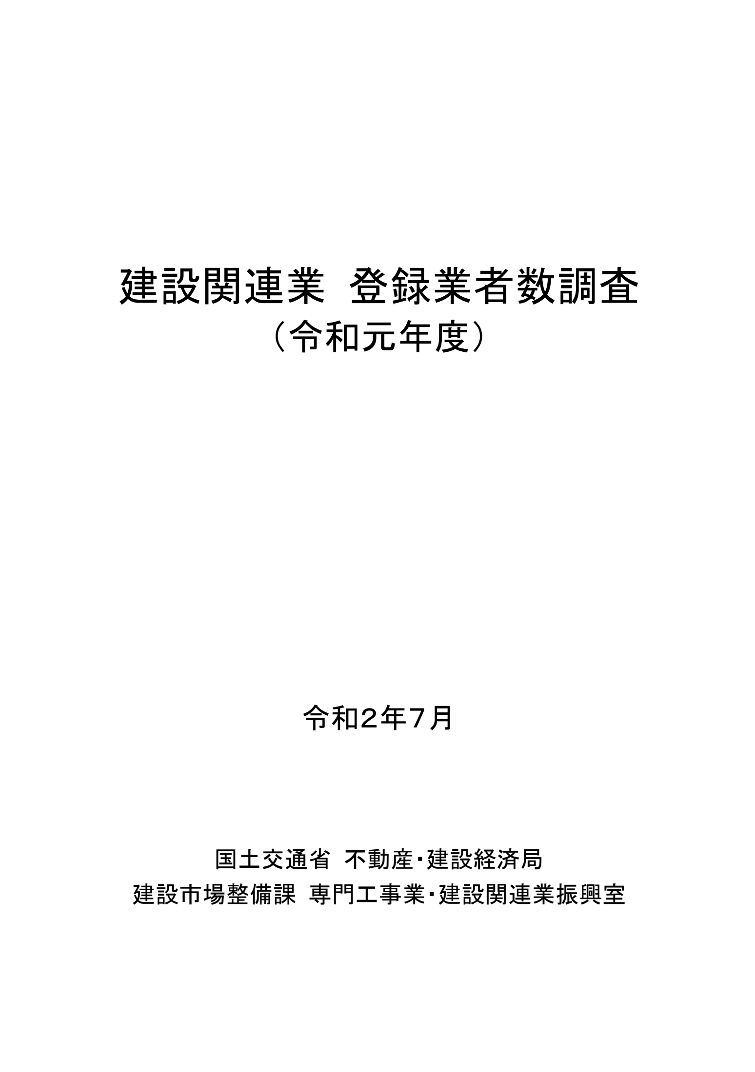 国土交通省は、令和元年度末の建設関連業の国土交通大臣登録業者数をとりまとめました。