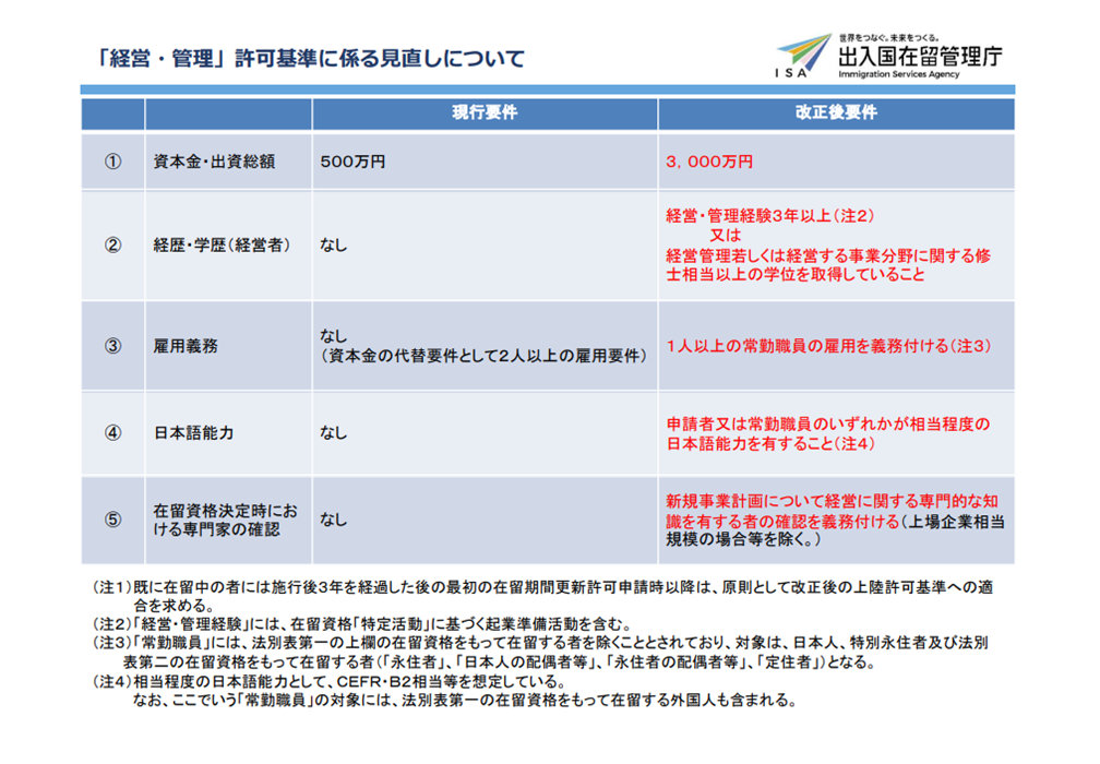 在留資格「経営・管理」に係る上陸基準省令等の改正について(出入国在留管理庁)