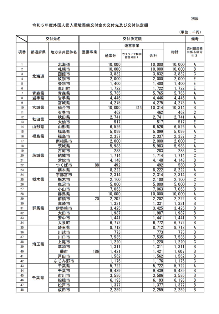 出入国在留管理庁は、令和5年度外国人受入環境整備交付金を活用した地方公共団体の一元的相談窓口の現況について公表しました。
