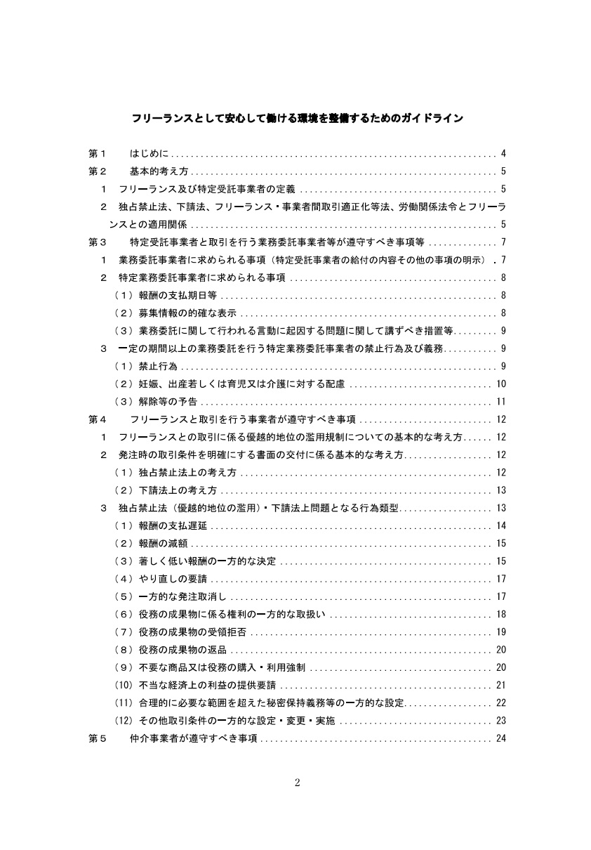 令和6年11月1日に「特定受託事業者に係る取引の適正化等に関する法律(フリーランス・事業者間取引適正化等法)」が施行されることを踏まえ、「フリーランスとして安心して働ける環境を整備するためのガイドライン」が改訂されました。