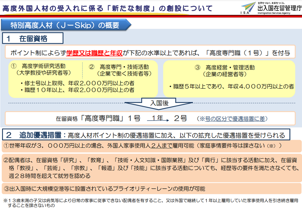 2023年4月から特別高度人材制度(J-Skip)、未来創造人材制度(J-Find)が導入されました。