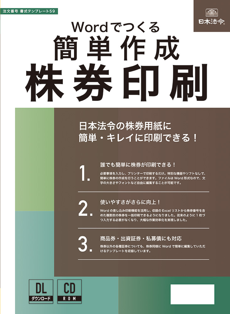 1 弊社発行の既成株券等に簡単に印刷ができる様式ひな型集です。