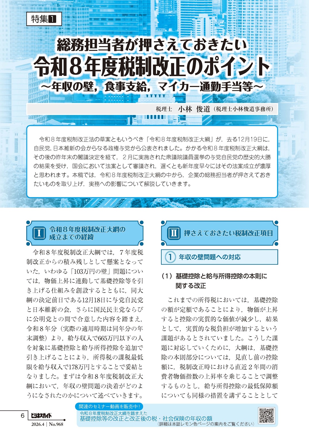 創刊50年を誇り、多くの社会保険労務士、企業の人事・労務担当者にご愛読いただいている実務誌『ビジネスガイド』の最新号を毎月お届けします。