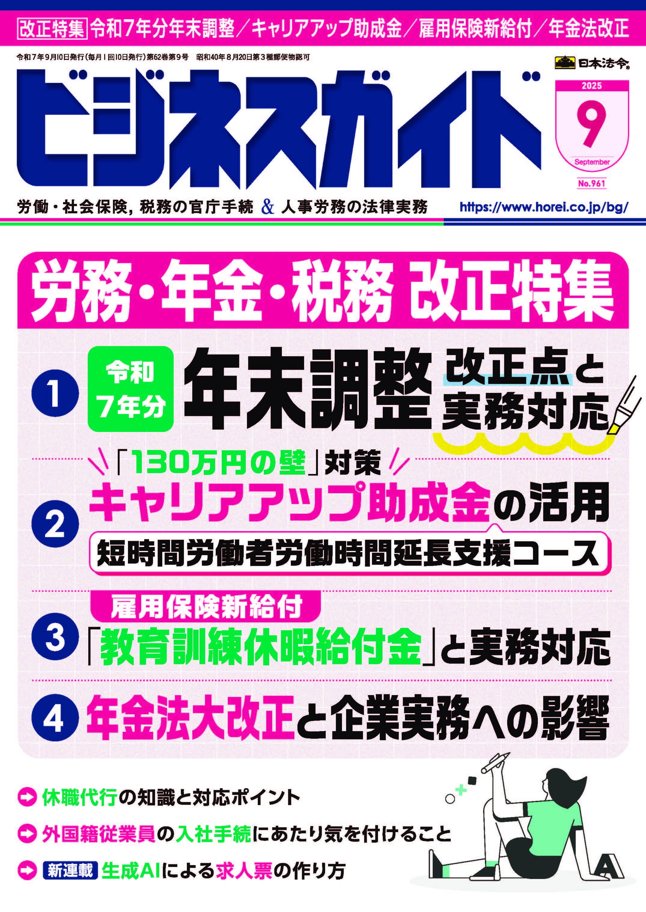 創刊50年を誇り、多くの社会保険労務士、企業の人事・労務担当者にご愛読いただいている実務誌『ビジネスガイド』の最新号を毎月お届けします。