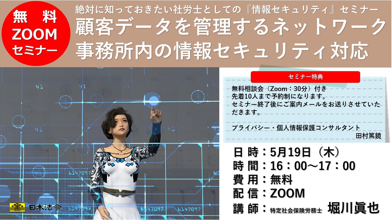 絶対に知っておきたい社労士としての『情報セキュリティ』セミナーの第2回を開催します!