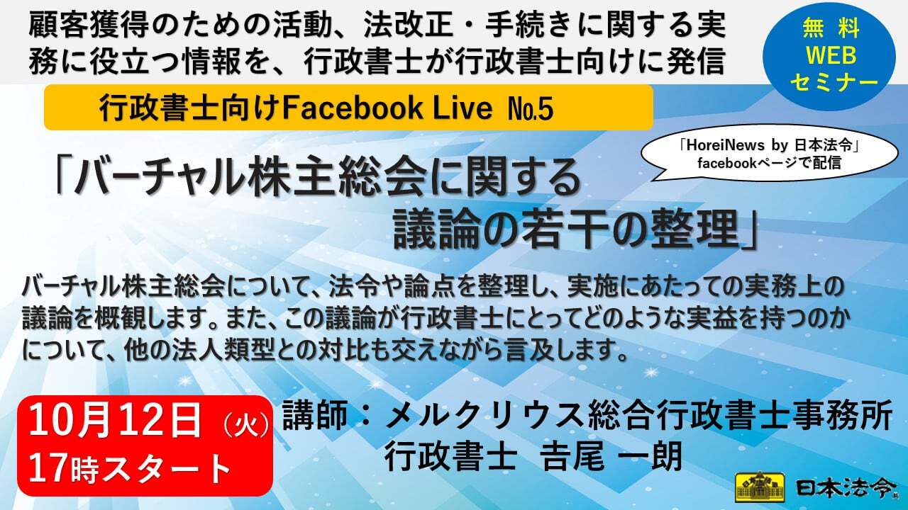 2021年10月12日配信行政書士向けFacebook Live No.5 |
